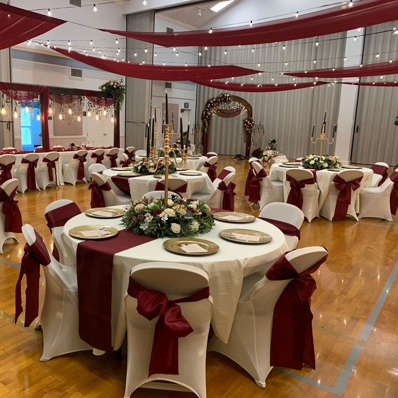 Turn any chapel gym, outdoor park or pavillion into a beautiful event center experience.